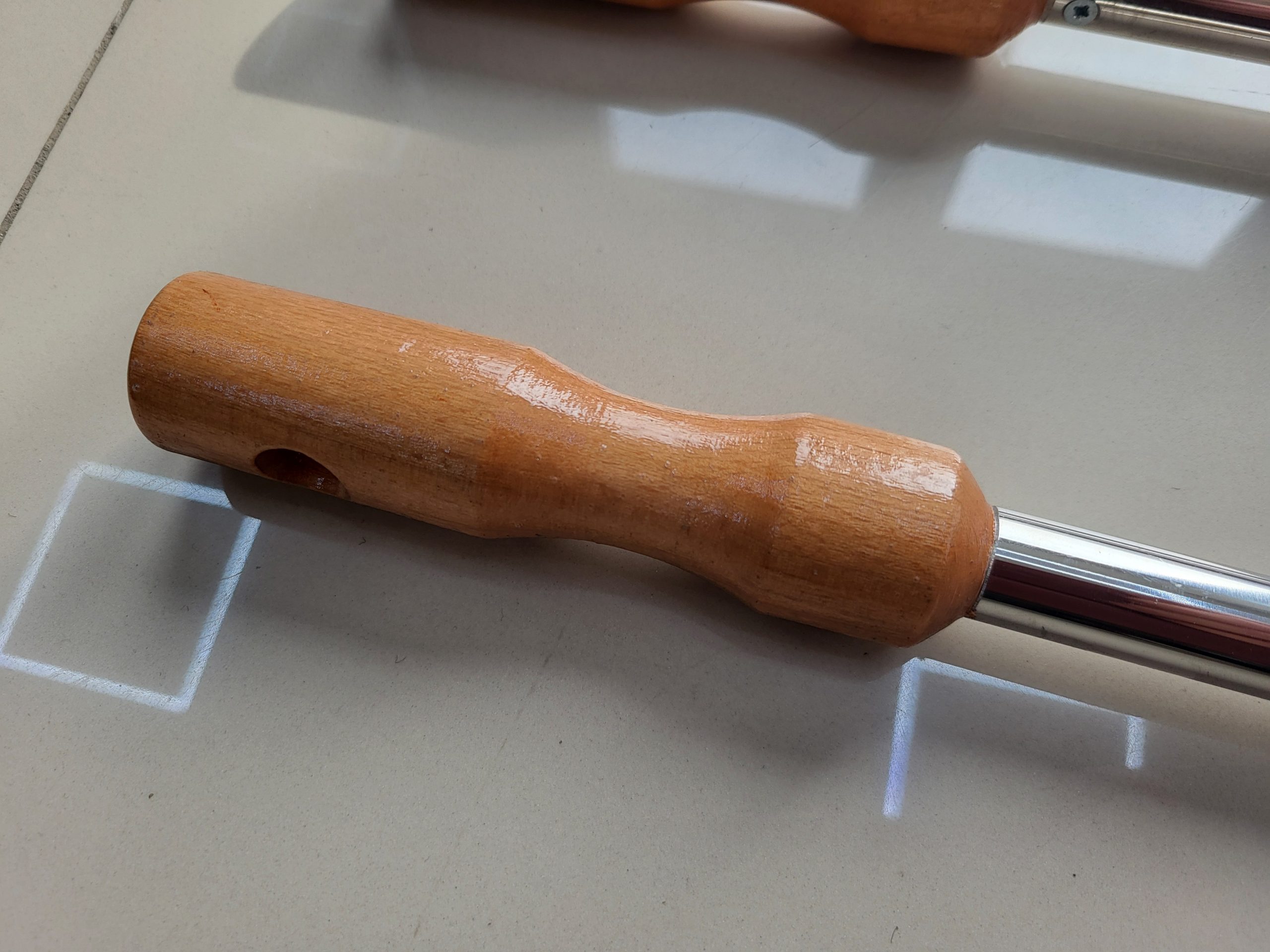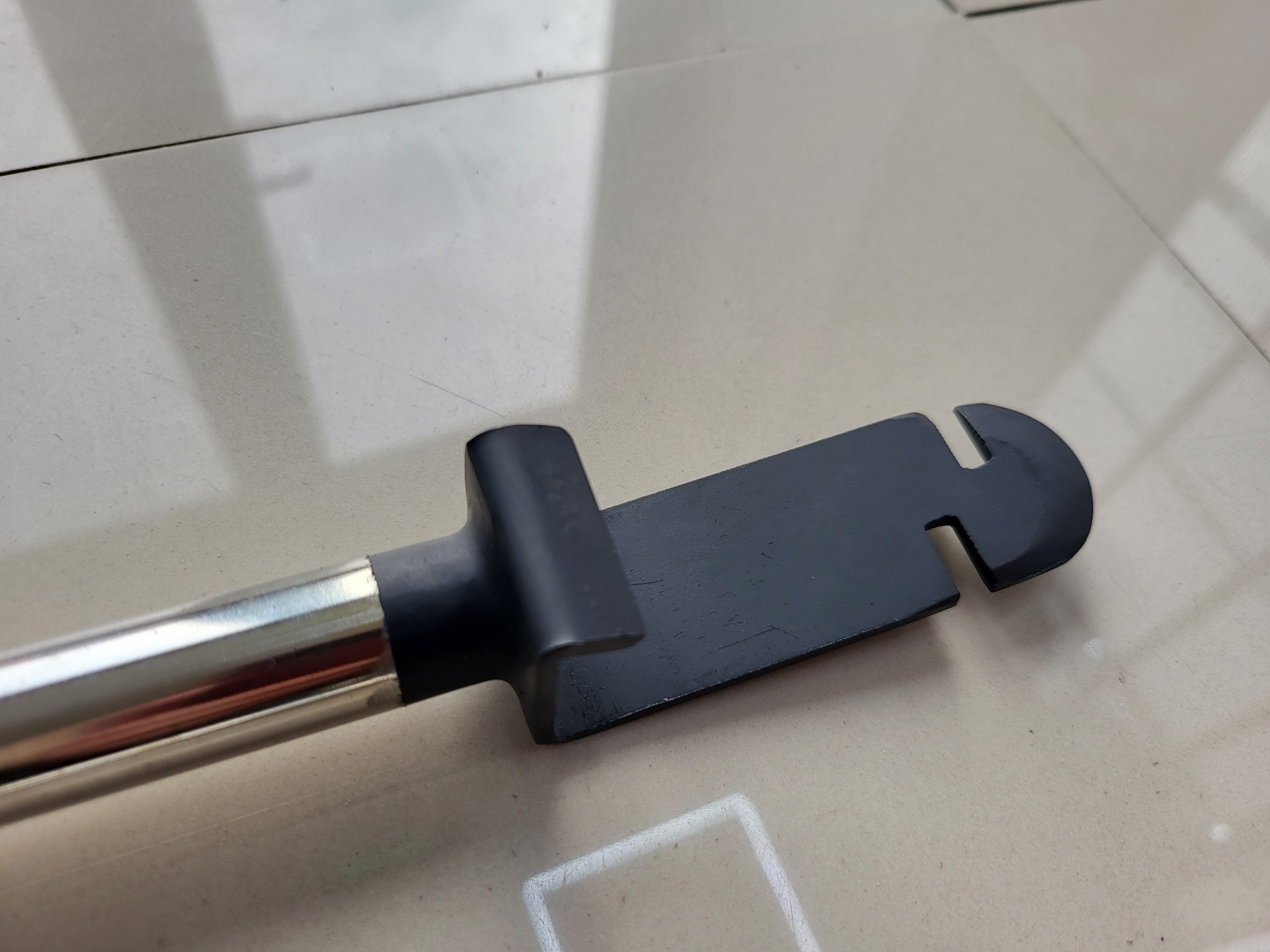 Tija din inox cu maner din lemn, pentru prins si manipulat tavile din otel albastru (atat dreptunghiulare cat si rotunde). Lungime totala 48 cm. Este alternativa la clestele clasic de prins tava.