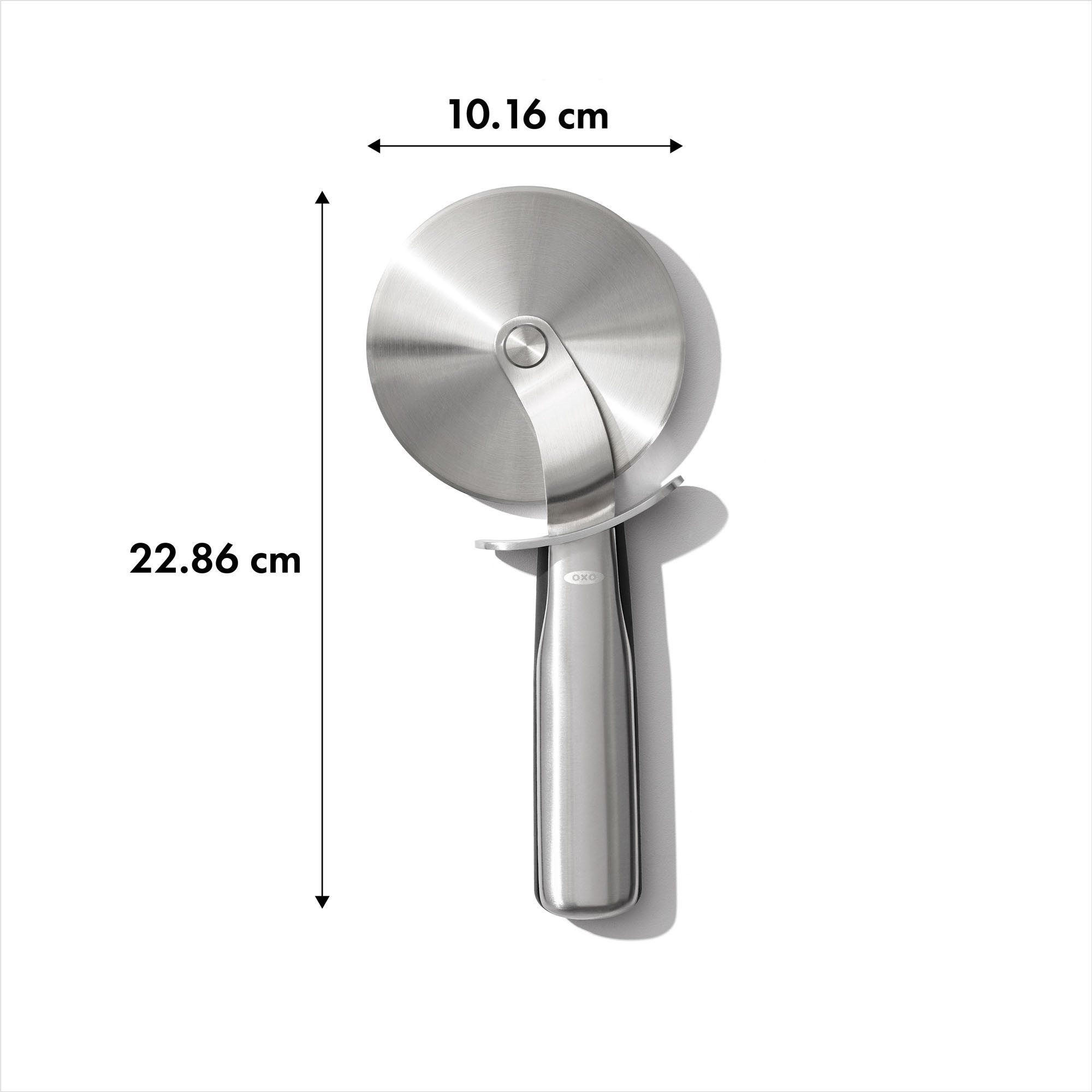 Cutit profesional de feliat pizza, calitate premium, fabricat complet din otel inoxidabil. Manerul robust dispune de cauciuc pentru confort la utilizare, dispozitiv de protectie al degetelor, lama de 10 cm diametru.