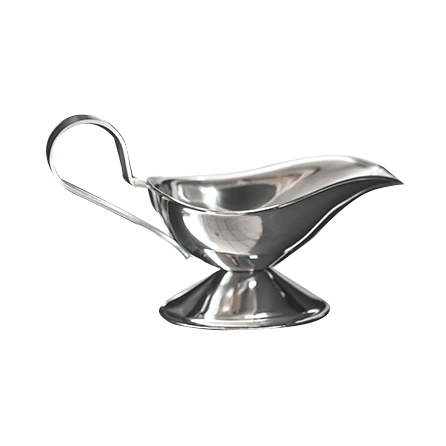 Sosiera din inox cu toarta si picior, capacitate 100 ml, dimensiuni 60x140x80 mm, greutate 90 g.